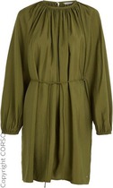 Платье отрезное по талии, низ платья из ткани присборен и к низу расширяется.