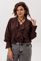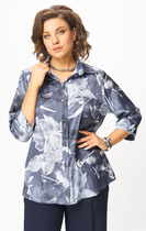Блузка женская свободного силуэта из ткани. Блузка с цельнокроеной планкой и центральной застежкой на пуговицы. На левой детали переда накладной карман.