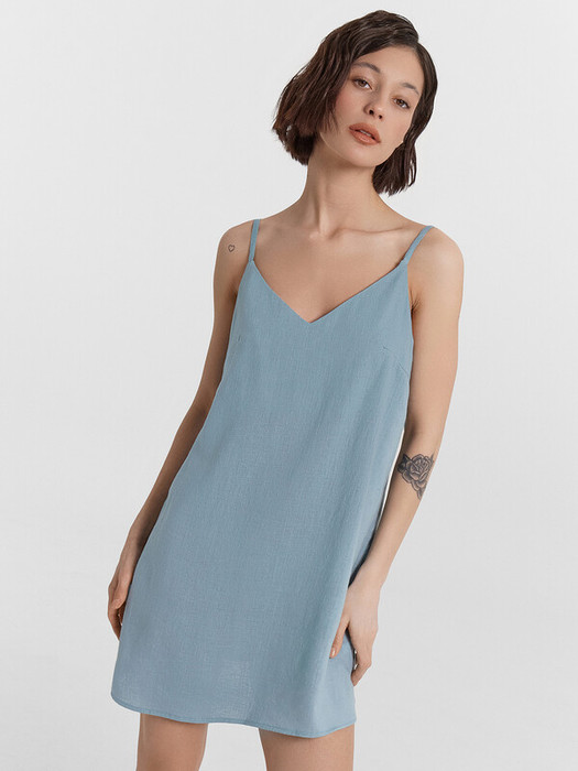 Сарафан свободного силуэта. Длина выше колена. Верхний край изделия обработан обтачкой из основного полотна. Бретели из основного полотна завязывающиеся в бант. Низ изделия обработан швом в подгибку.