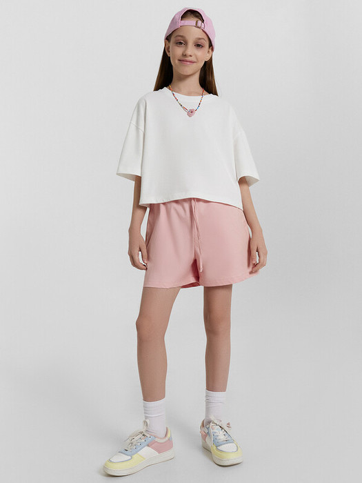 Шорты для девочек. Силуэт свободный. Пояс отрезной из основного полотна, с эластичной
