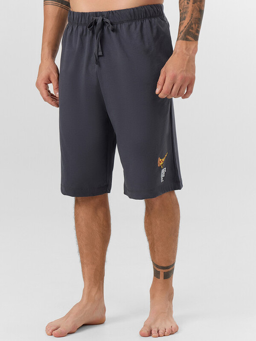 Шорты прямые, свободные. Пояс цельнокроеный с эластичной тесьмой внутри. С внешней стороны пояса пробиты петли и втянута хб тесьма.В боковых швах обработаны карманы, подкладка кармана из основного полотна. Нижние срезы брюк выполнены швом вподгибку на 2-игольной плоскошовной машине.