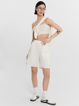 Шорты широкие, короткие. Посадка высокая. Пояс отрезной с эластичной тесьмой внутри (внутр. 60мм 60RV). Шорты без боковых швов. Нижние срезы обработаны швом вподгибку