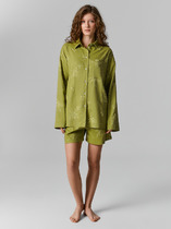 Эти женские домашние шорты — удобный и стильный элемент гардероба! Модель свободного силуэта гарантирует комфорт и непринужденность, идеально подходя для расслабленных домашних образов. Эластичный пояс гарантирует легкую посадку и удобство, а обработка низа шорт швом в подгибку добавляет аккуратности и долговечности. Шорты выполнены из сочетания натурального льна и района — материалов, которые прекрасно дополняют друг друга. Лен обеспечивает легкость, воздухопроницаемость и свежесть даже в жаркие дни, а район добавляет мягкость, эластичность и приятную текстуру, что делает шорты особенно комфортными. Сочетайте эту модель с рубашкой из этой же коллекции бренда для создания гармоничного и стильного комплекта, который будет радовать вас как дома, так и в моменты отдыха. Рекомендуем!