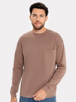 Теплый мужской свитшот из трикотажного футера с нежным подчесом. Силуэт прямой, вырез классический – круглый, не глубокий. Рукава длинные, на манжетах из рибаны. Спущенная линия плеча дарит свободу движений. Пояс, проходящий по нижнему срезу, также сделан из рибаны. Отличный свитшот для городских образов.