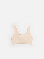 Топ прилигающего силуэта длиной чуть выше середины бедер. Верхний край спинки, бретели, срезы пройм окантовы бейкой. Перед и спинка цельнокроеные. Низ застрочен на 2-хигольной плоскошовной машине швом вподгибку с открытм срезом