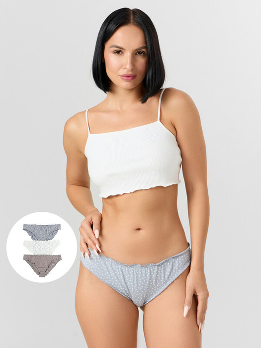 Нежный набор женских трусиков-слипов — это выбор для тех, кто ценит комфорт и элегантность в деталях! Модели со средней линией талии обеспечивают идеальную посадку, подчеркивая естественную линию фигуры. Выполненные из хлопковой кулирки, они отличаются мягкостью, эластичностью и приятной текстурой, которая дарит комфорт в течение всего дня. Эластичная сборка на верхнем и нижнем срезах придаёт изделиям изящный и милый вид, подчеркивая утонченность дизайна. Такой набор идеально подходит для повседневного использования, позволяя вам чувствовать себя уверенно и комфортно. Стильные, мягкие и очаровательные — они станут прекрасным дополнением к вашему гардеробу!