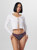 Трусы женские, средняя линия  талии, силуэт - стринги. Передняя деталь выполнена из кружева. Ластовица из кружева, на подкладке из хлопка, отрезная по верхнему срезу. Задняя деталь выполнена из кружева. По верхнему срезу задней детали трусов ловабль, переходящий в протяжки. Под верхним краем кружева передней детали жилка 6мм. с изнаночной стороны. Протяжки из жилки 6мм. Нижние срезы трусов обработаны жилкой.