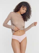Трусы женские шорты со средней линией талии из трикотажного полотна рибана. Передняя деталь цельная. Ластовица из кулирной глади отлетная по переднему срезу.