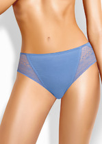 Трусы женские, силуэт слип, из трикотажного кулирного полотна, со средней посадкой, с протяжками по бочкам. Передняя и задняя детали цельные. Подкладка ластовицы из кулирной глади отлетная по переднему срезу. На бочках отверстия.