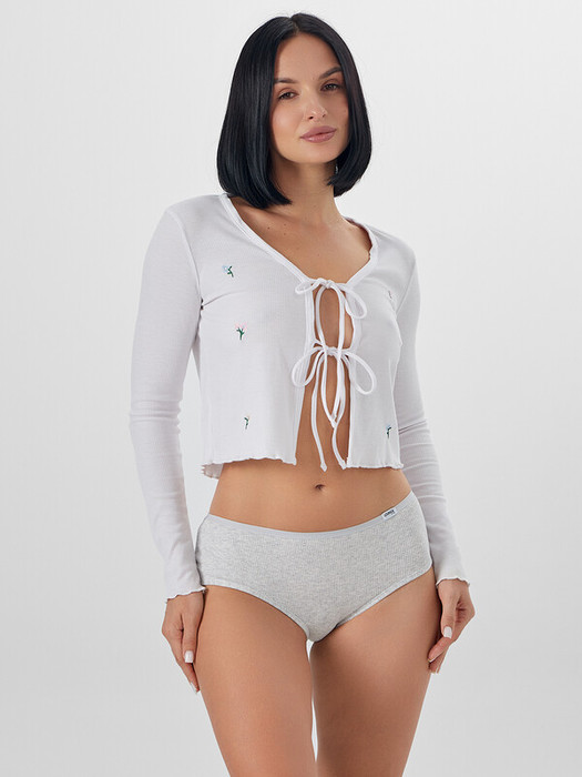 Трусы женские шорты, выполнены из рибаны. Передняя и задняя детали цельные.