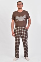 Брюки сшиты из дышащего трикотажа, который мягко облегает тело, не стесняя движений во время отдыха или домашних дел. Универсальный фасон легко сочетается с майками, свитшотами и пижамными верхами. Вы можете купить домашние брюки этой модели — они устойчивы к деформации, сохраняют цвет и форму после множества стирок.