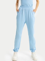 Брюки свободного силуэта со средней посадкой в пол. Пояс цельнокроенный с эластичной  тесьмой внутри (20мм 20RV). Карманы в боковых швах, внутри карманов кулирное полотно.