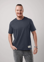 Стильная мужская футболка свободного кроя, выполненная из хлопковой кулирки. Этот материал отличается мягкостью, дышащими свойствами и гипоаллергенностью, что делает модель особенно комфортной для ежедневного ношения. Футболка с круглой горловиной и короткими рукавами со спущенной линией плеча обеспечивает максимальную свободу движений и удобство. Она станет отличным дополнением вашего гардероба, сочетая в себе комфорт, стиль и высокое качество.