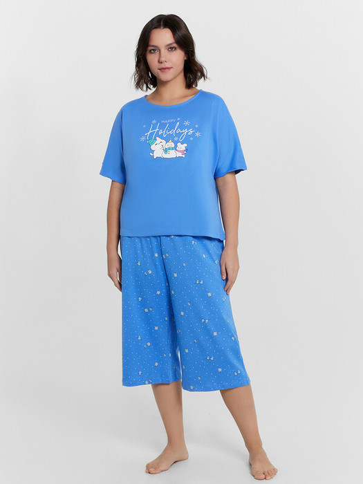 Пижама женская для ваших комфортных домашних образов - идеальный выбор для уютных вечеров и расслабленного отдыха. Комплект состоит из футболки и бриджей. Джемпер свободного силуэта с круглой горловиной и рукавами длиной выше локтя обеспечивает максимальный комфорт и свободу движений. Бриджи с комфортной посадкой на талии прямого кроя дополняют комплект, создавая гармоничный и стильный образ. Изделие выполнено из нежной кулирки - материала, который отличается особой мягкостью, воздухопроницаемостью и прочностью. Кулирка прекрасно впитывает влагу и быстро сохнет, обеспечивая комфорт в течение всего дня. Эта пижама станет вашим любимым вариантом для домашних образов, сочетающим в себе удобство и элегантность. Рекомендуем!
