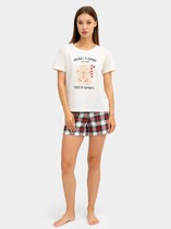 Mark FormelleКОМПЛЕКТ ЖЕНСКИЙ (ДЖЕМПЕР, ШОРТЫ) 592325 592325 молочный +клетка на