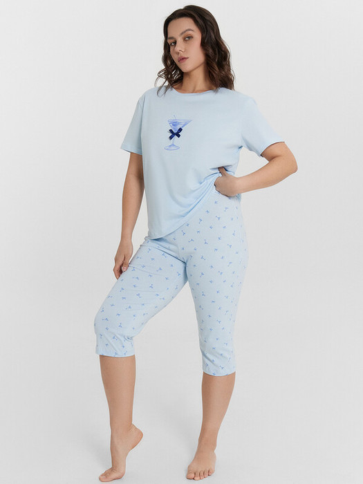 Совместные покупки Нижний Тагил Женская одежда Пижамы, халаты — Mark FormelleКОМПЛЕКТ ЖЕНСКИЙ (ФУТБОЛКА, БРИДЖИ) 592370 592370 голубое небо +кок