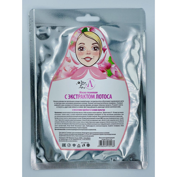 Нежная шелковистая питательная эссенция тканевой маски с экстрактом лотоса обеспечивает выравнивание цвета и структуры кожи, интенсивное увлажнение и питание. Улучшает клеточный метаболизм эпидермиса. Усиливает иммунитет кожи усиливая естественную защитную функцию, регулирует обменные процессы. Устраняет сухость и стянутость, дарит коже нежность и сияние. Цвет лица улучшается, происходит мягкое осветление кожи.