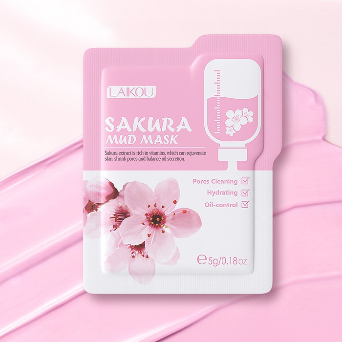 Совместные покупки Нижний Тагил Косметика и парфюмерия Тени — Маска для лица с экстрактом сакуры и каолином очищающая Laikou, саше 5 гр.