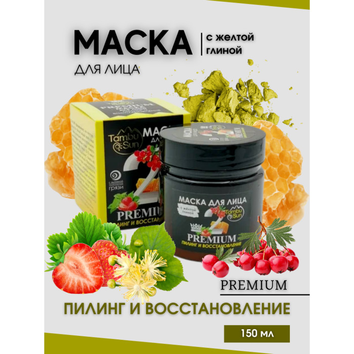 Премиум маска для лица №2 "Пилинг и восстановление" с тебердинской желтой глиной, экстрактами кавказских растений и высокогорным медом прекрасно подходит для регулярного очищения кожи лица.