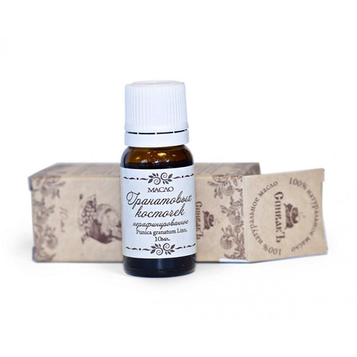 Масло Гранатовых косточек получают способом холодного отжима гранатовых семян (косточек) без дальнейшей рафинации. Масло семян граната имеет превосходные увлажняющие, защищающие и питательные свойства. Уникальный состав масла придает мембранам клеток эластичность и подтягивает ткани, разглаживает морщины. Рекомендуется к использованию для ухода за усталой, безжизненной, увядающей и зрелой кожей.