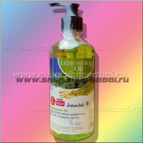 Масло лемонграсс Banna Lemongrass Oil Ароматическое масло с экстрактом лемонграсса для ухода за кожей и для массажа с цитрусовым расслабляющим ароматом, успокаивающим и тонизирующим. В масле лимонника содержится множество биологически активных веществ, масло лемонграсса усиливает умственную и физическую активность, а также защищает от насекомых и снимает кожный зуд. Масло с экстрактом лимонника отлично подойдет в качестве антистрессового массажного масла, для снятия напряжения и усталости. Объем масла 450 мл, пластиковая бутылка с дозатором. Произведено в Таиланде. Состав масла Лемонграсс: минеральное масло, экстракт лимонника, витамин E. Обращаем внимание наших покупателей, что данный товар имеет неплотно прилегающую пробку с дозатором (под фабричной пленкой), и во время доставки масло может слегка подтекать.