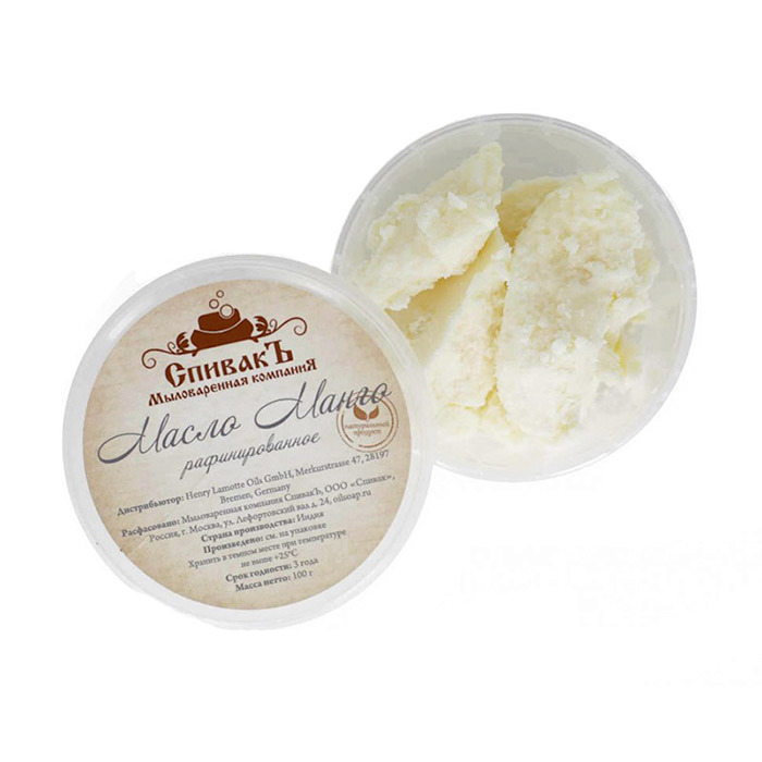 Масло Манго производят из косточек плодов манго. Оно обладает удивительными косметическими свойствами. Делает кожу мягкой, эластичной, упругой и бархатистой. Из-за высокого содержания неомыляемой фракции масло обладает отличными восстанавливающими и регенерирующими свойствами. Устраняет шелушение кожи, заживляет трещинки в уголках рта и на губах. Регулярное использование масла манго способствует устранению небольших шрамов, следов от различных кожных образований.
