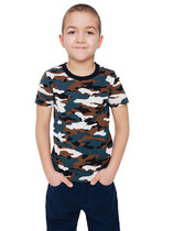 Майка из хлопкового трикотажа, декорированная ярким принтом с пайетками. Свободный крой, круглый вырез горловины.На ребенке представлен размер 110:- Ширина изделия по линии груди 29,5 см- Ширина по низу изделия 40 см- Длина изделия 40 смРазница между размерами составляет 1,5 см.