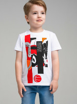 Трикотажная майка, декорированная ярким принтом деталями из пайеток. Свободный крой, круглый вырез горловины, спинка "борцовка".На ребенке представлен размер 140:- Ширина изделия по линии груди 36 см- Ширина по низу изделия 47,5 см- Длина изделия 49,9 смРазница между размерами составляет 1,5 см.