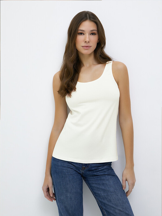 Женская майка из высококачественного хлопка. Материал в составе обладает отличной воздухопроницаемостью, хорошо впитывает влагу и подходит для чувствительной и нежной кожи. Добавление эластана позволяет создать полуприлегающий силуэт и способствует длительному сохранению формы и цвета.