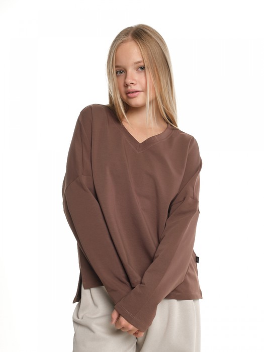 Mini Maxi Свитшот для девочки однотонный (152-164см) 22-7699-2(4) шоколад