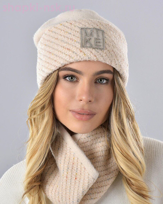 Совместные покупки Нижний Тагил Женские аксессуары Шапки — Мохер мульти отворот квадрат термо Комплект флис (шапка+снуд) (56-58)