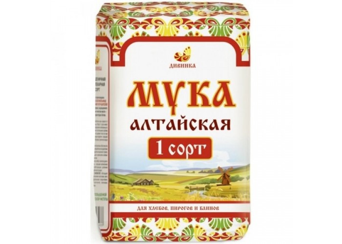 Мука пшеничная 1 сорт, 2 кг, пакет (Дивинка)