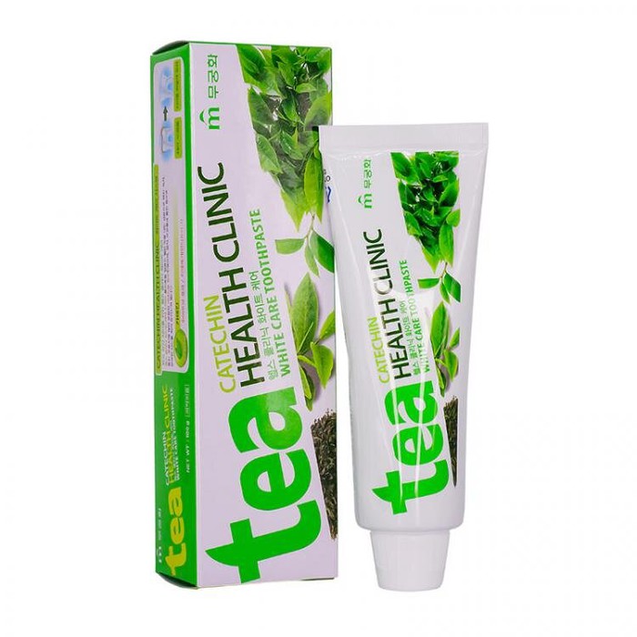 Mukunghwa Tea Catechin Health Clinic – это зубная паста оказывает отбеливающее действие, предотвращает развитие кариеса, зубного камня, заболевания десен. Катехин и полифенол в большом количестве содержатся в таких чаях как белый, зеленый, красный (черный), улун. Зубная паста с катехином эффективно очищает поверхность зубов от остатков пищи, следов курения. Обладает бактерицидным эффектом, является природным антисептиком. Зубная паста освежает дыхание и поддерживает чистоту полости рта.