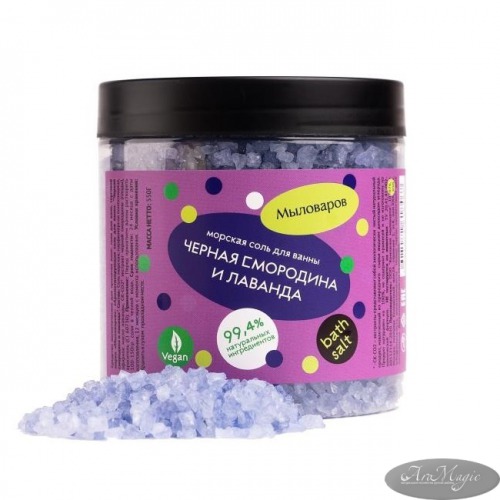 Ванна с морской солью с благородным ароматом прохладной лаванды и пикантной чёрной смородины поможет почувствовать приятное расслабление и мысленно перенестись на романтичные луга далёкого Прованса. Целебные растительные экстракты посодействуют превращению вашей кожи в нежный шёлк. Натуральная морская соль ЧЕРНАЯ СМОРОДИНА И ЛАВАНДА активно насытит воду полезными микроэлементами — превратите обычное принятие ванны в приятный процесс релаксации и омоложения.