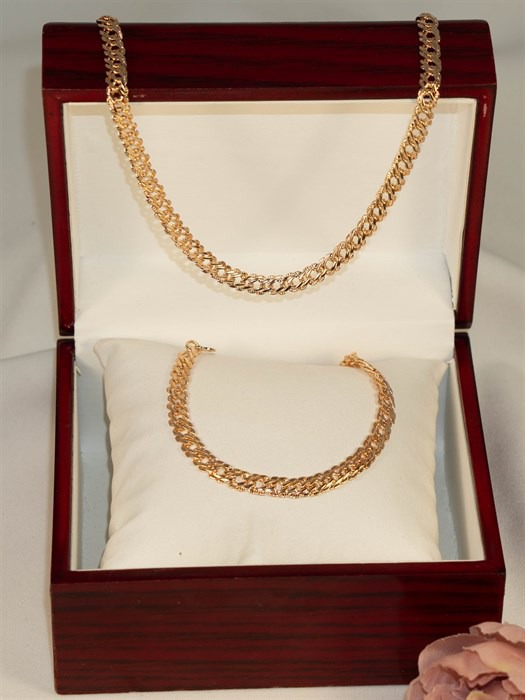 Цепочка и браслет из дубайского золота с очень красивым нежным плетением двойной ромб