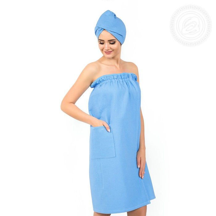 Банное парео с карманом на липучке: 1шт, чалма на пуговице: 1 шт