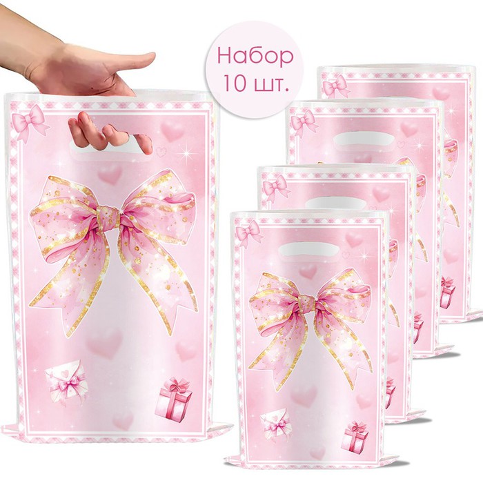 — Набор пакетов подарочных 10 штук 25*17 см. Бантики