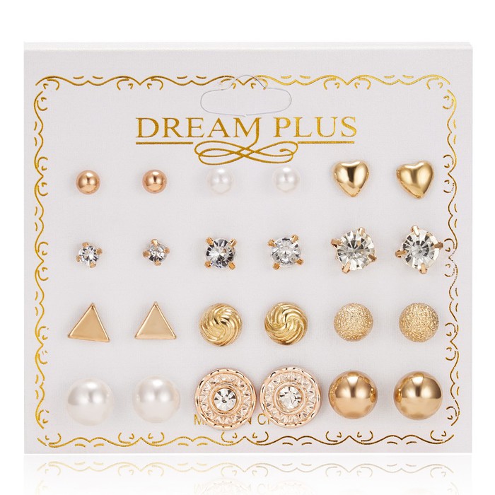 Универсальный набор поможет решить какую пару выбрать на то или иное событие.В комплекте 12 пар на различные случаи в жизни.Красивый набор стильных оригинальных сережек отлично подойдет для повседневной носки и для вечерних образов.