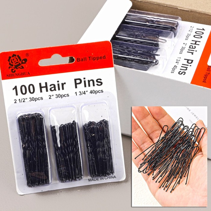 Набор шпилек для волос 100 штук 3 размера. Цвет: Черный