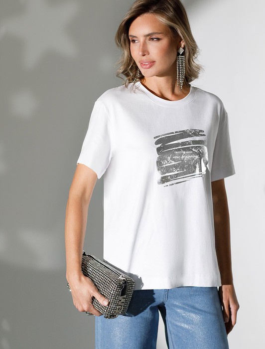 Совместные покупки Нижний Тагил Женская одежда Костюмы, комплекты — Нарядная футболка с принтом фольгой из премиального хлопка с эластаном