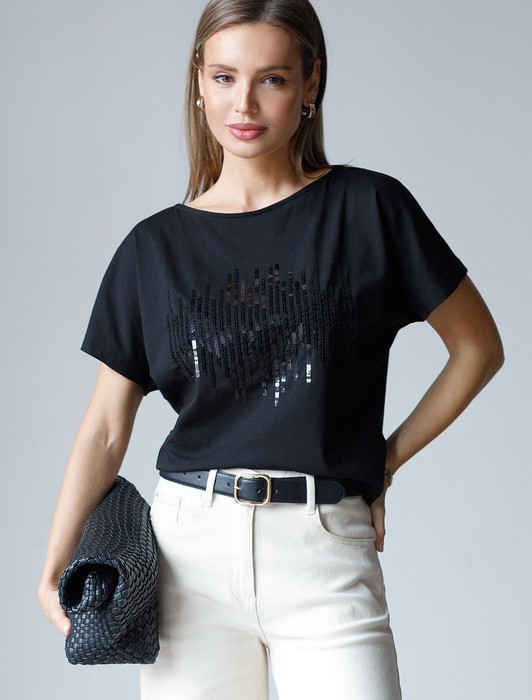 Нарядная футболка с принтом пайетками