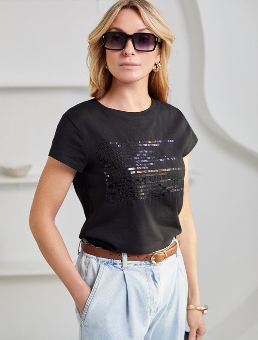 Совместные покупки Нижний Тагил Женская одежда Футболки — Нарядная футболка с принтом пайетками