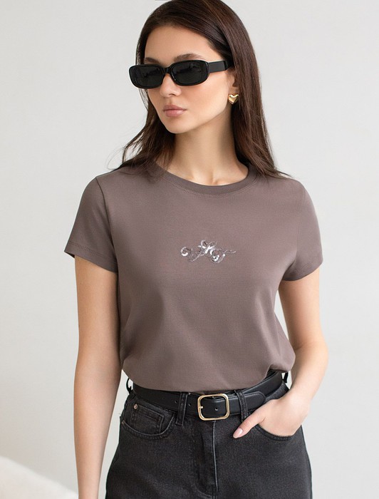 Состав: 92%Хлопок 8%ПУ Плотность: 170 Г/м2Стильная базовая футболка кофейного цвета с серебристым принтом пайетками выполнена из плотного хлопка с эластаном для комфортной посадки на любую фигуру. Прямая футболка классического кроя с круглым вырезом, прекрасно подходит для разных типов фигуры, в том числе и на большие размеры. Мягкость хлопка вместе с небольшой долей эластана гарантирует идеальную посадку и свободу движений. Легкая натуральная дышащая ткань премиального качества делает футболку с коротким рукавом идеальным вариантом для повседневной носки дома, на работу или офис. Однотонная футболка дополнена авторским аккуратным принтом, который придает праздничный и элегантный вид без лишней вычурности. Блестящий принт аккуратно украшает, добавляя изысканный акцент и создавая легкий мерцающий эффект.