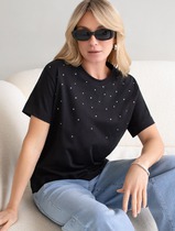Совместные покупки Нижний Тагил Женская одежда Футболки — Нарядная футболка с принтом стразами из премиального хлопка с эластаном