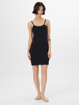 Сорочка молодежная из гладкокрашеного вискозного полотна, удлиненная, расширенная книзу, с лифом «бюстье», без рукавов, с разрезом в левом боковом шве. Спинка – с бретелями, соединенными с лифом по плечевым швам. Верхний срез спинки окантован основным материалом. Вырез горловины и проймы отделаны кружевом. Чашечки лифа присборены по швам соединения с основной деталью переда. В центре выреза горловины переда – декоративный бантик из узкой атласной ленты.