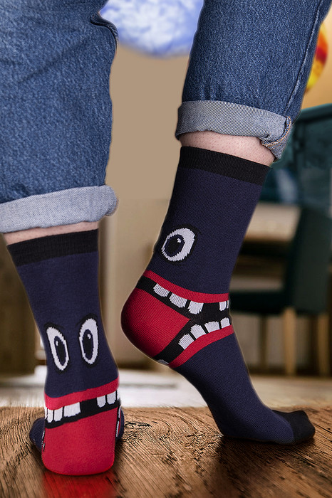 Набор мужских стилизованных носков с рисунками в виде челюстей. В упаковке 3 пары — по 1 паре каждого вида. В продаже имеются аналогичные подростковые носки Челюсти