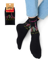 Урбанистический принт создает яркий акцент и привлекает внимание, а разнообразная палитра оттенков позволяет создавать контрастные сочетания и бесконечно экспериментировать со стилем. Носки отлично подойдут и для него, и для нее.
