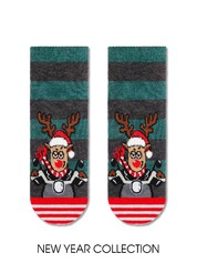 Новогодние короткие носки "Рудольф" с пушистой нитью 375