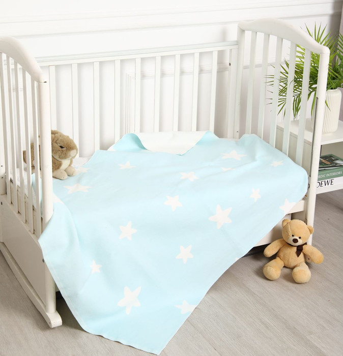 Одеяло детское байковое 100% хлопок Звёзды (Голубой)