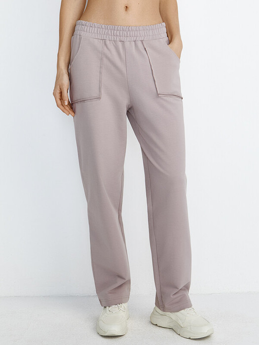 Женские прямые брюки с накладными карманами и поясом на резинке.